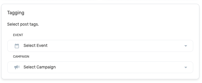 Once you are happy with your captions, you are going to be able to tag the relevant piece of content to an event or campaign, so that it is easier for you as an admin to gather information on their performance.