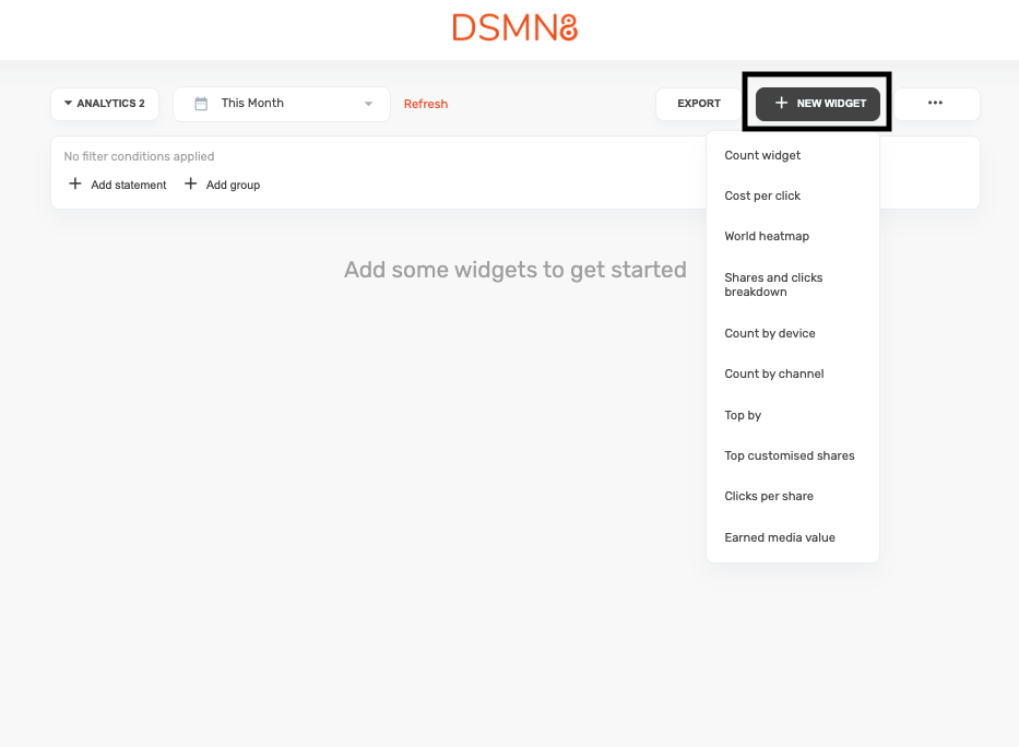 · Choose how you would like to measure the widget (by clicks, shares, social reach etc).